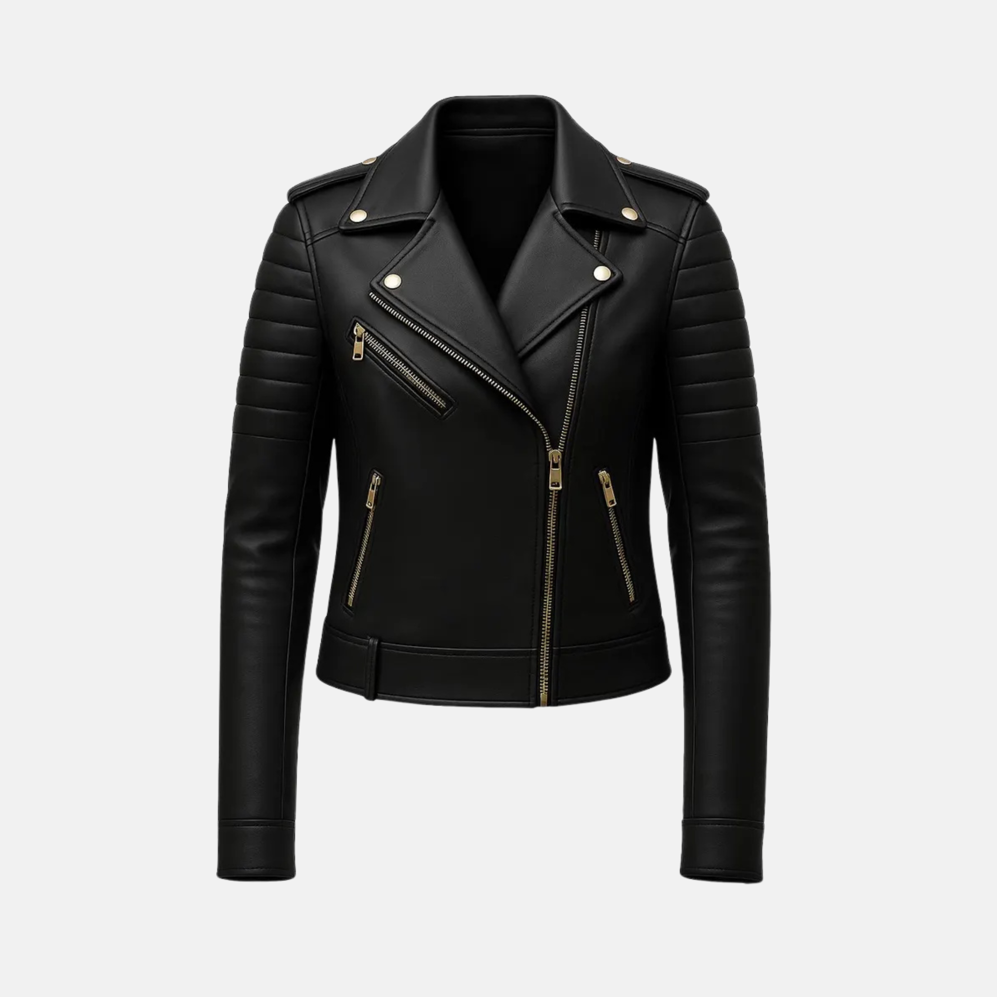 Step into timeless style with our women’s black genuine leather quilted motorcycle jacket. Crafted from high-quality leather, this slim-fit biker jacket offers both durability and elegance. The quilted detailing adds a touch of sophistication, while the tailored fit flatters your silhouette. Ideal for motorcycle rides, city strolls, or casual outings, this women’s leather jacket is a versatile wardrobe essential. Designed for comfort, style, and lasting wear, it makes an excellent gift for fashion lovers.