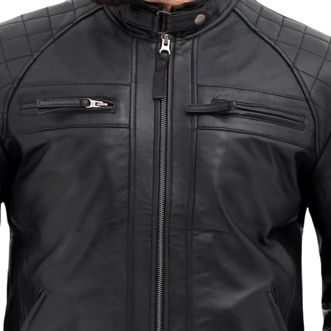 - Design: Classic biker silhouette with an asymmetrical zip-front and wide lapel collar. Combines iconic café-racer and vintage elements with a clean, modern fit for timeless style.