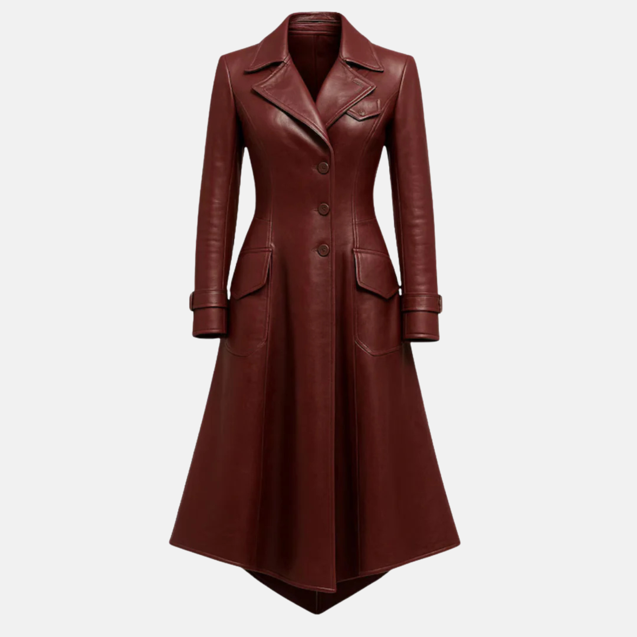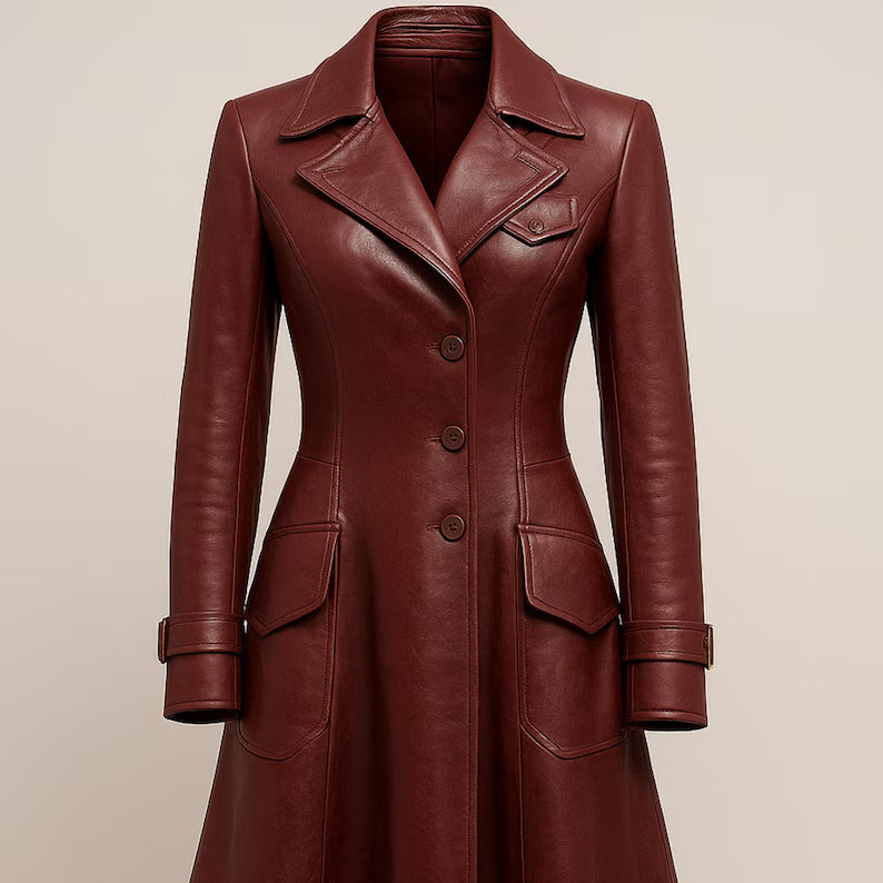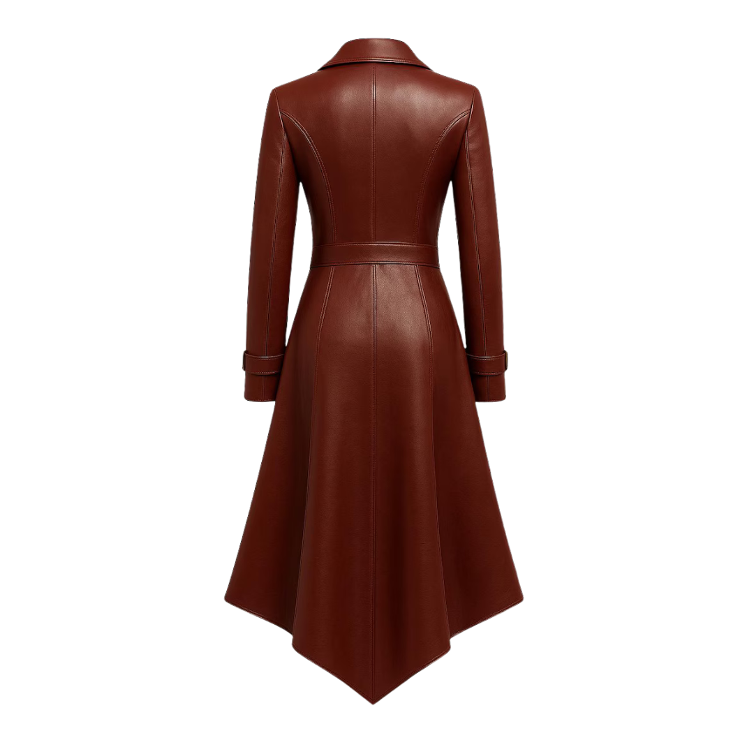 This coat is not just outerwear—it’s a statement piece. Perfect for women searching for a leather trench coat, long leather jacket, or a custom winter coat.