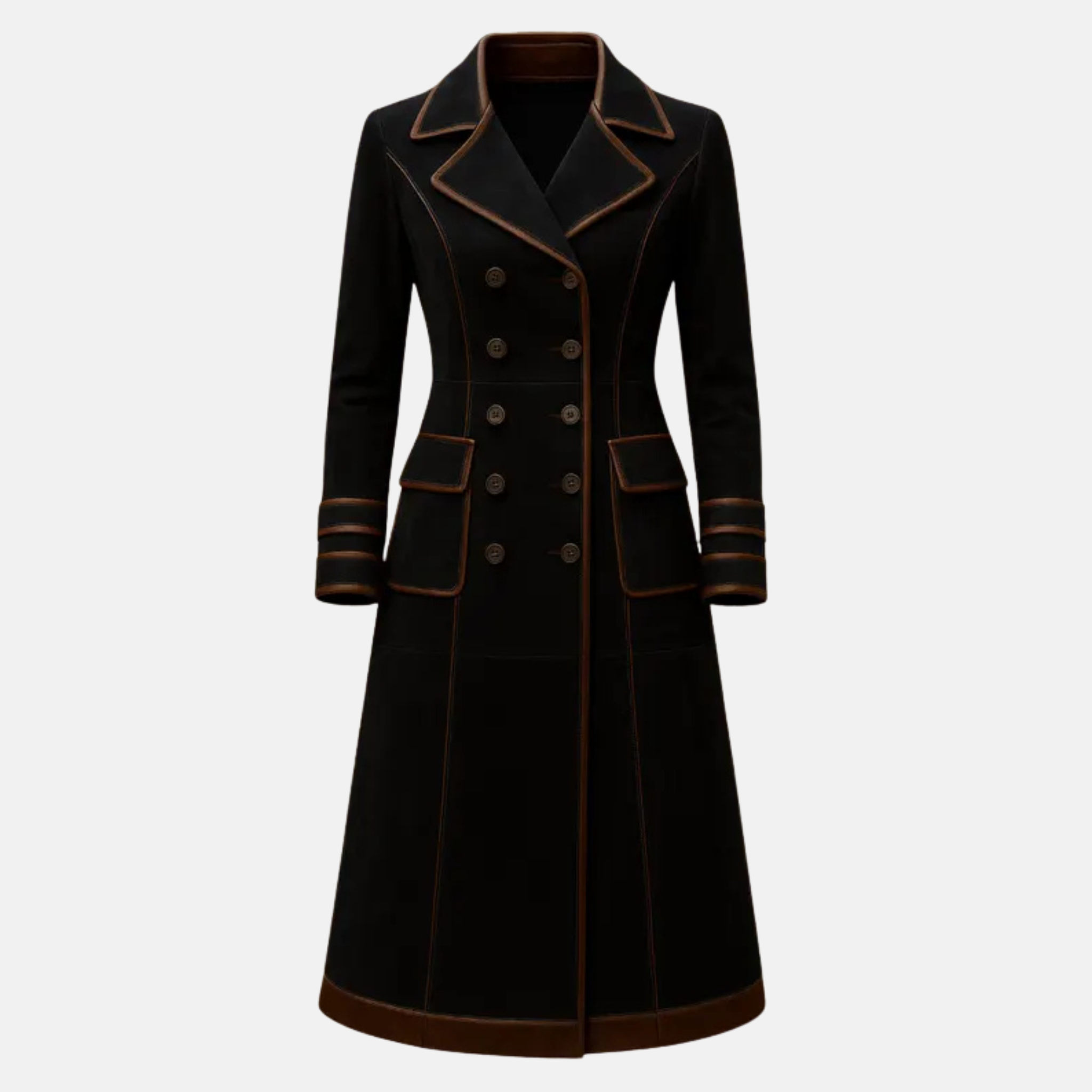 Every coat is expertly handmade by skilled artisans, giving it a soft suede texture, perfect tailoring, and durable stitching. The double-breasted front and structured silhouette create a graceful, confident look that never goes out of style.