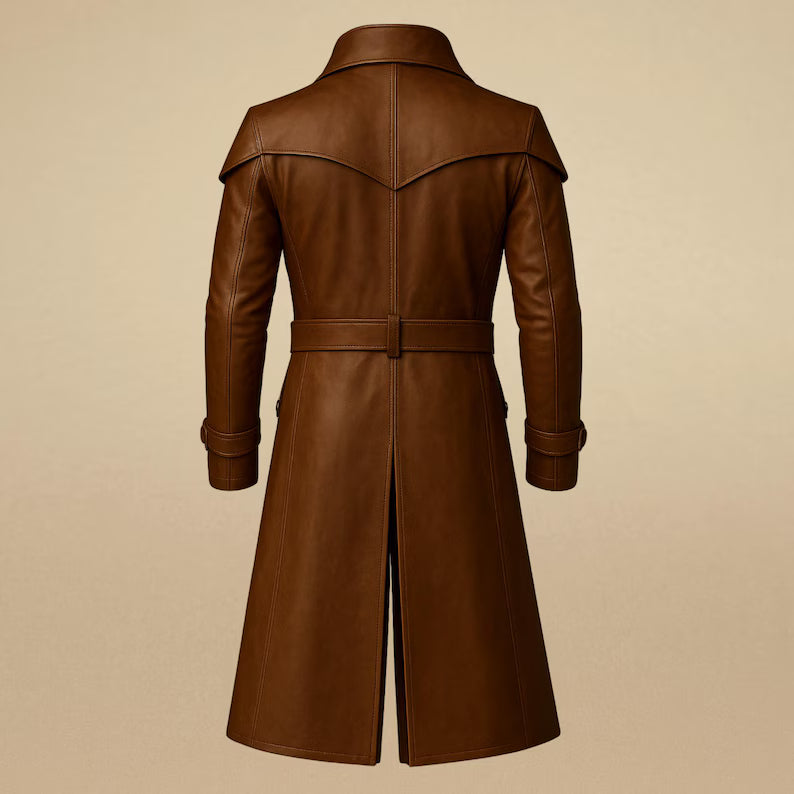 Men’s Handmade Brown Leather Trench Coat