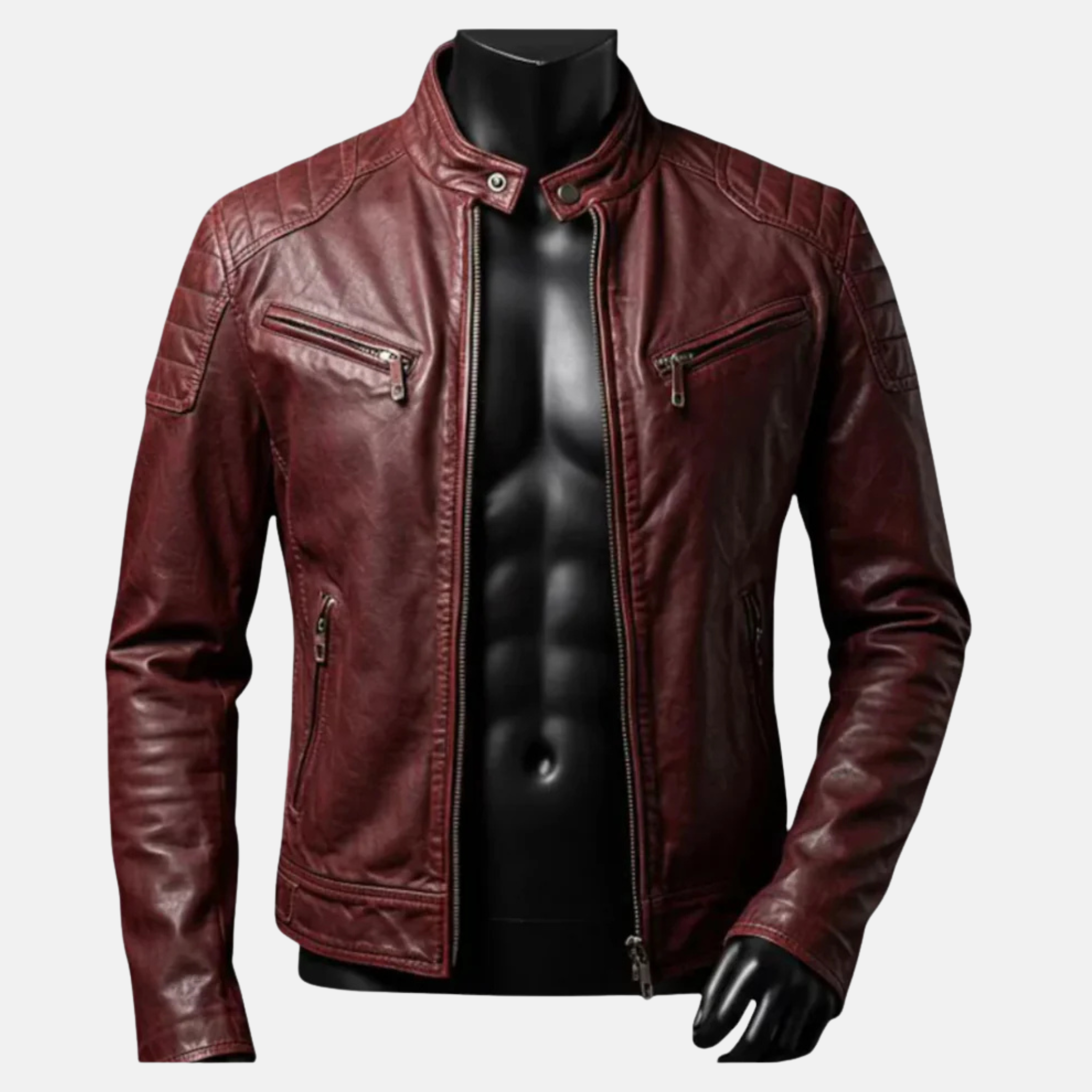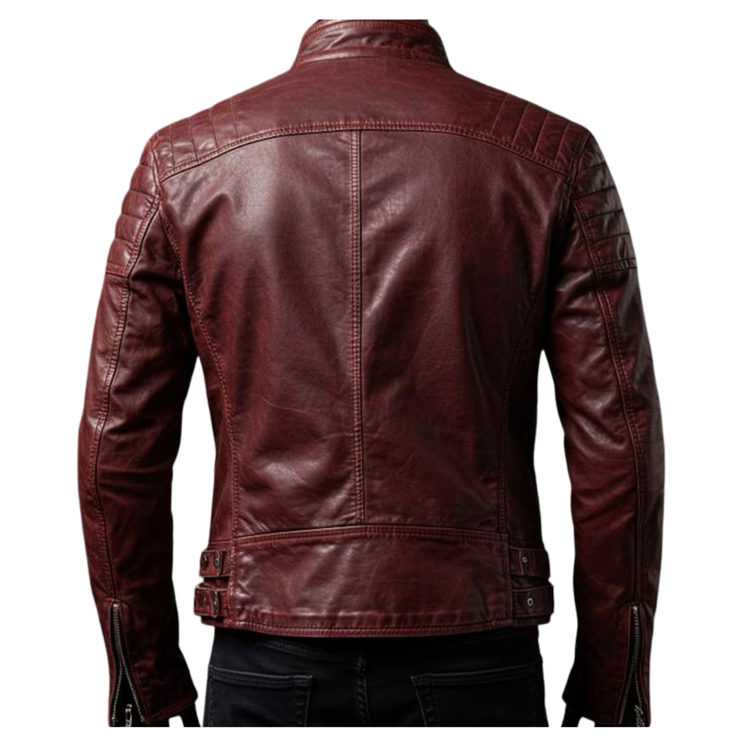 Men’s Handmade Vintage Burgundy Leather Jacket – a timeless blend of bold color, premium craftsmanship, and biker-inspired style.