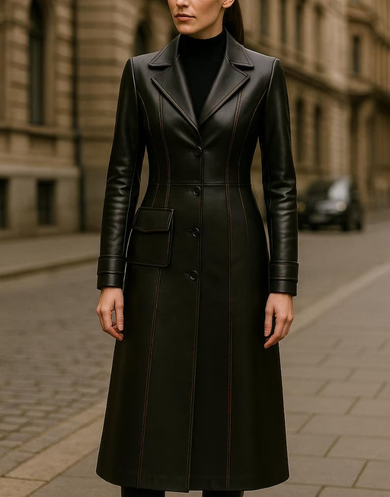 A must-have for anyone looking for a gothic leather coat, vampire cosplay trench, or steampunk festival jacket.