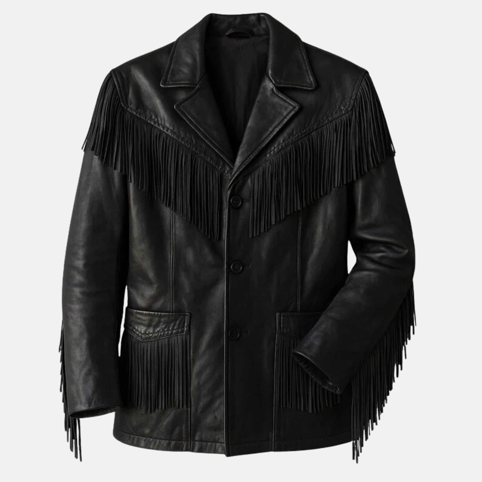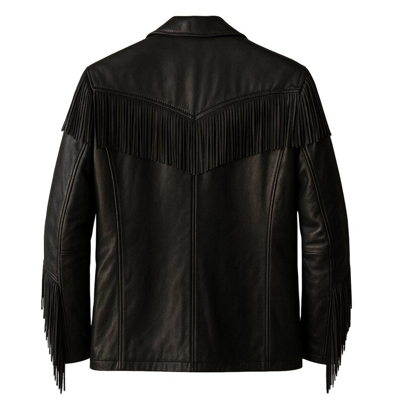 Elevate your style with this Handmade Men’s Western Cowboy Leather Jacket with Fringes, crafted from genuine real leather for durability and timeless appeal. This western leather jacket is designed with classic cowboy details, giving it a bold and rugged look. Perfect for riders, vintage fashion lovers, and collectors of cowboy jackets, this versatile piece pairs style with comfort. Whether you need a real leather jacket, leather coat men, or simply a standout fringe leather jacket, this black cowboy coat adds unmatched authenticity to your wardrobe.