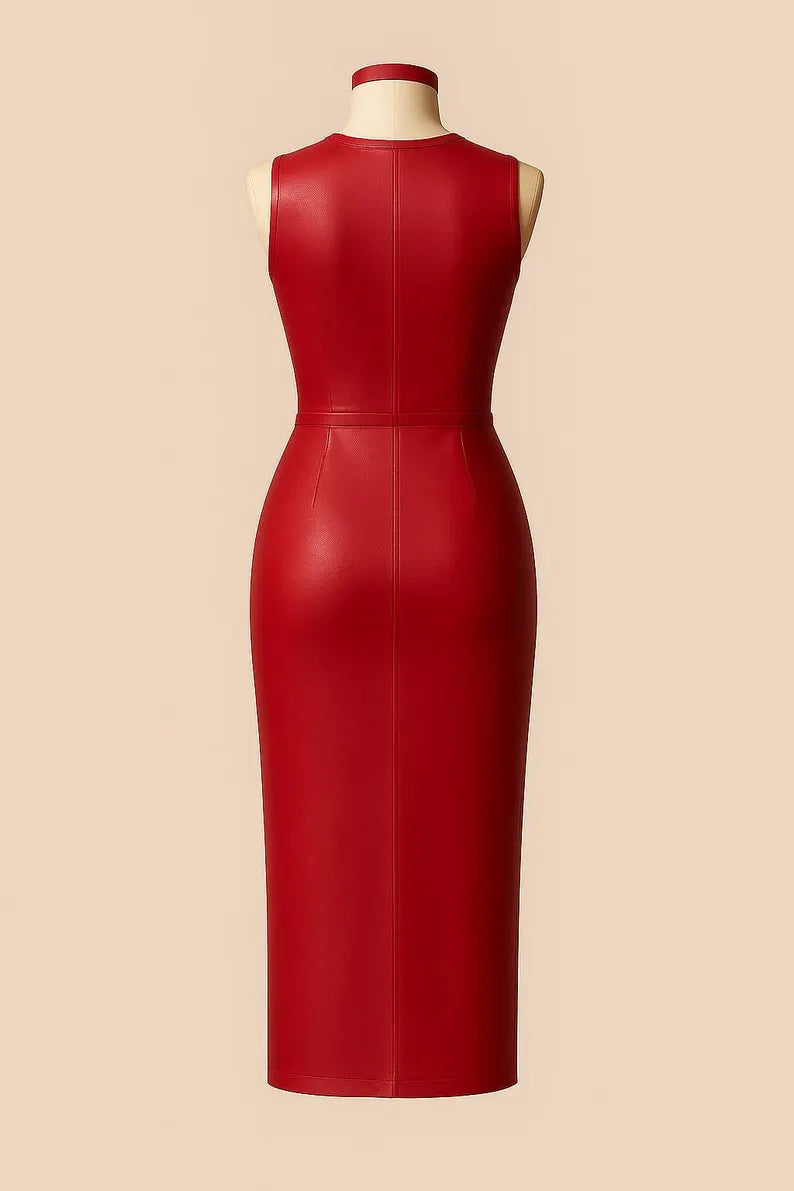 Elevate your style with this handmade red leather dress, designed to blend sophistication, confidence, and luxury. Made from 100% genuine leather, this bodycon-style sleeveless dress hugs your curves for a flawless fit perfect for Christmas dinners, parties, and elegant evenings.