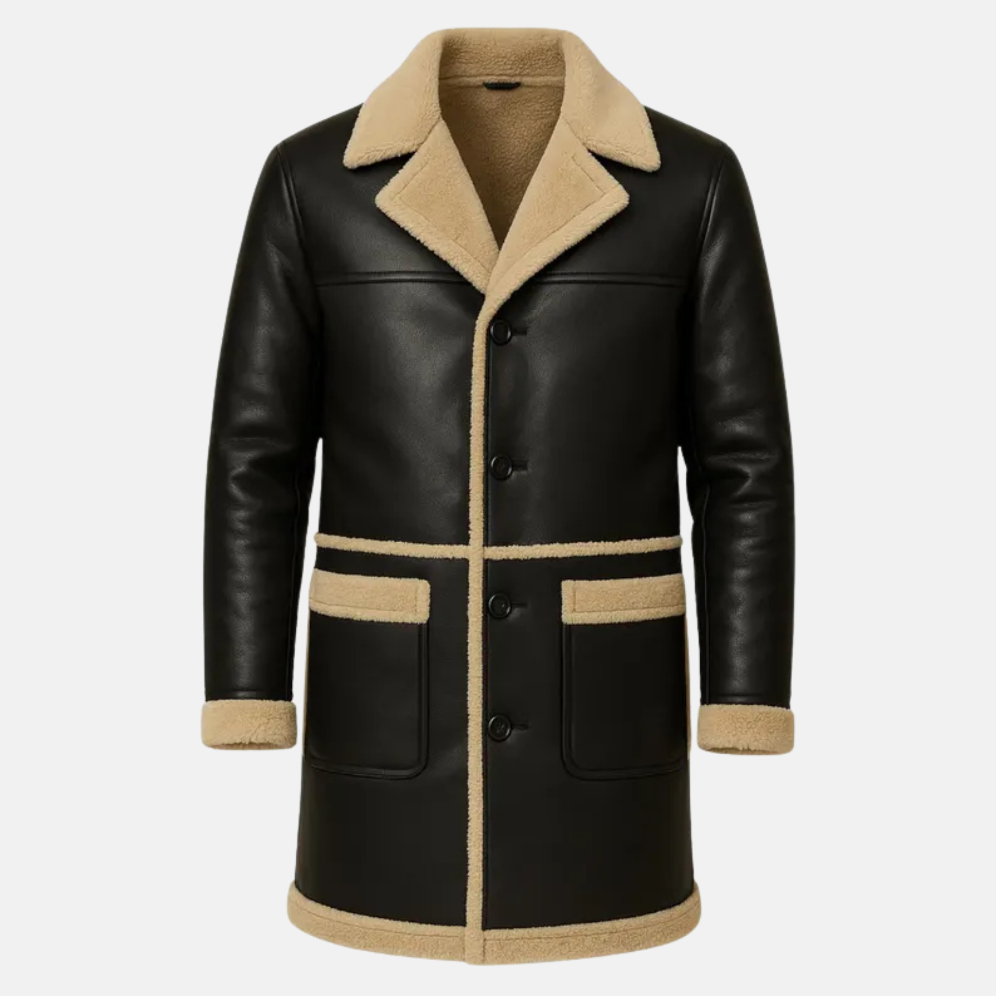 Stay warm in style with this handcrafted Men’s Shearling Leather Coat, designed for ultimate winter comfort and luxury.