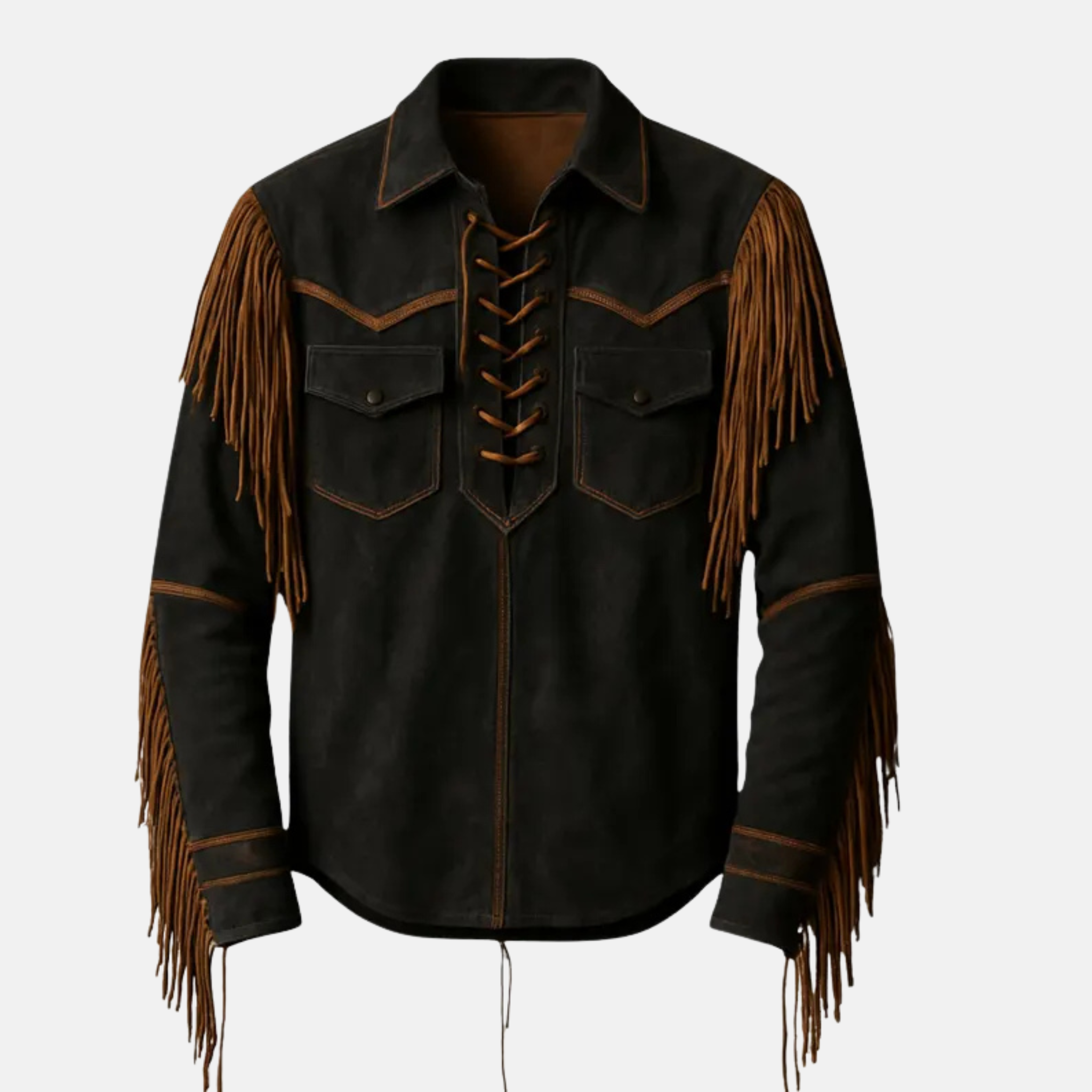 Bring classic western style to life with this Men’s Western Fringe Jacket. The lace-up front, shoulder fringes, and vintage cowboy cut make it a perfect mix of rugged and stylish.