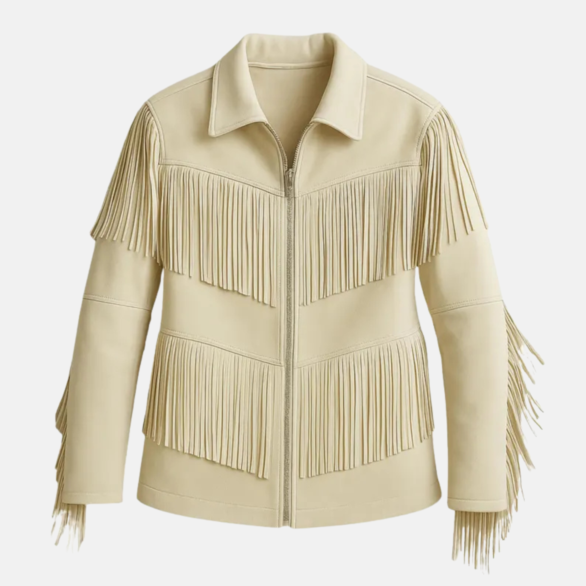 • Western-style fringes on chest, sleeves, and back