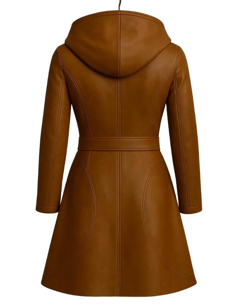 Add elegance and warmth to your wardrobe with this women’s brown leather trench coat, designed for a perfect balance of style, comfort, and durability. Made from 100% genuine leather, this long coat features a modern hooded design, a button-down front, and a sleek tailored finish that makes it ideal for both casual and formal wear.